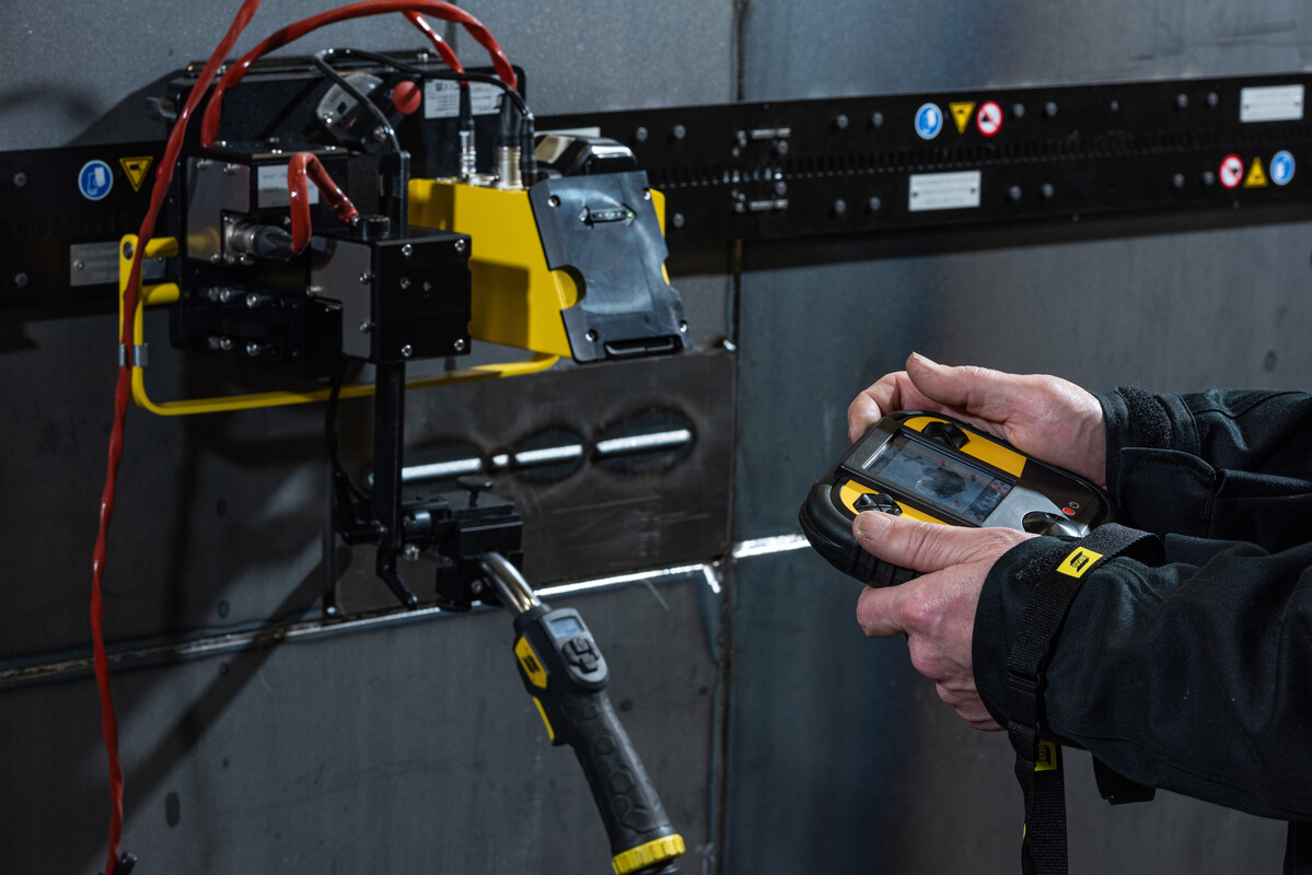 ESAB Tracfinder Rail to całkowicie modułowy i programowalny szynowy traktor spawalniczy. Zapewnia wysoką wydajność i precyzję spawania w kompaktowej, wytrzymałej obudowie. Urządzenie ESAB Tracfinder Rail przeznaczone jest do spawania w pionie i poziomie we wszystkich pozycjach, z wykorzystaniem szyn o dużej stabilności.
